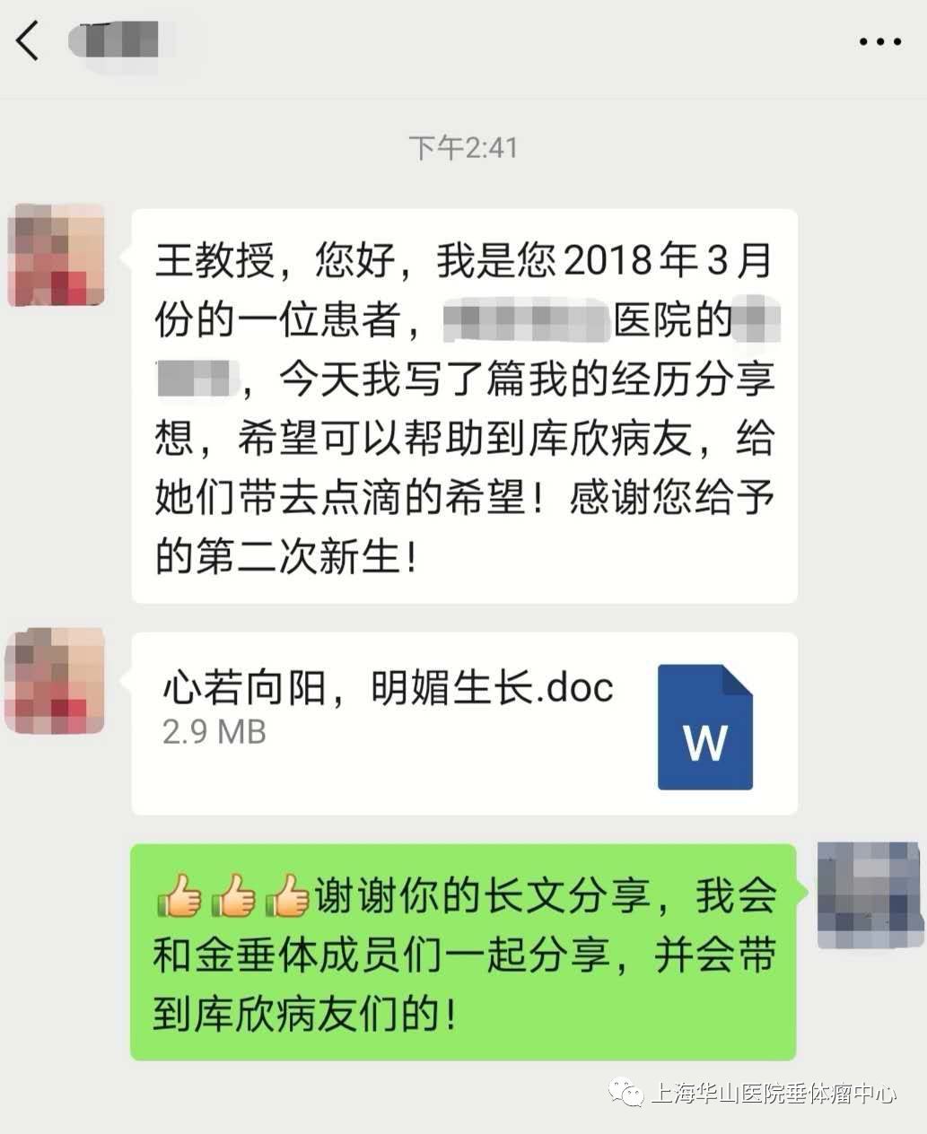 我无数次的想要表达感谢,感谢王教授让我重塑新生,再次可以享受幸福的生活,感谢寿雪飞老师在我诊疗过程中给予的温暖,感谢金垂体团队让我拥有第二次生命!言语愈发显得苍白,我希望把我的故事说出来让我的病友们能够更坚强的走下去,我的经历已经非常坎坷,一路褴褛,但是我依旧迎来了我的第二次生命,我希望广大病友可以在短暂的痛苦下迎来像我这样的重生和绚丽人生!希望我们一同努力在华山金垂体团队的帮助下让库欣病人过得更出彩!